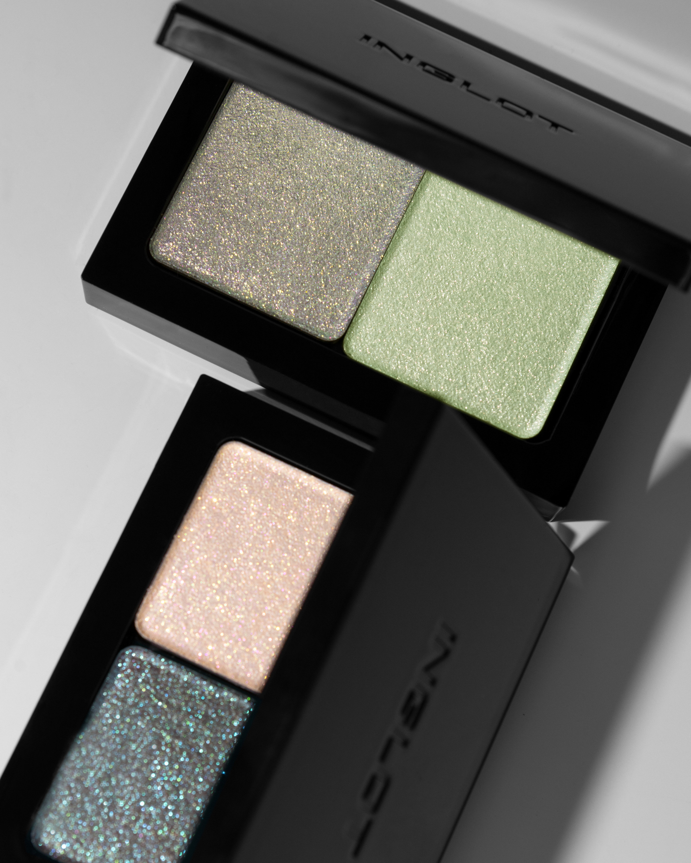 • W celu podkreślenia widoczności drobin w cieniach, do aplikacji użyj Pędzli do makijażu 10S, 6SS lub 46SS.