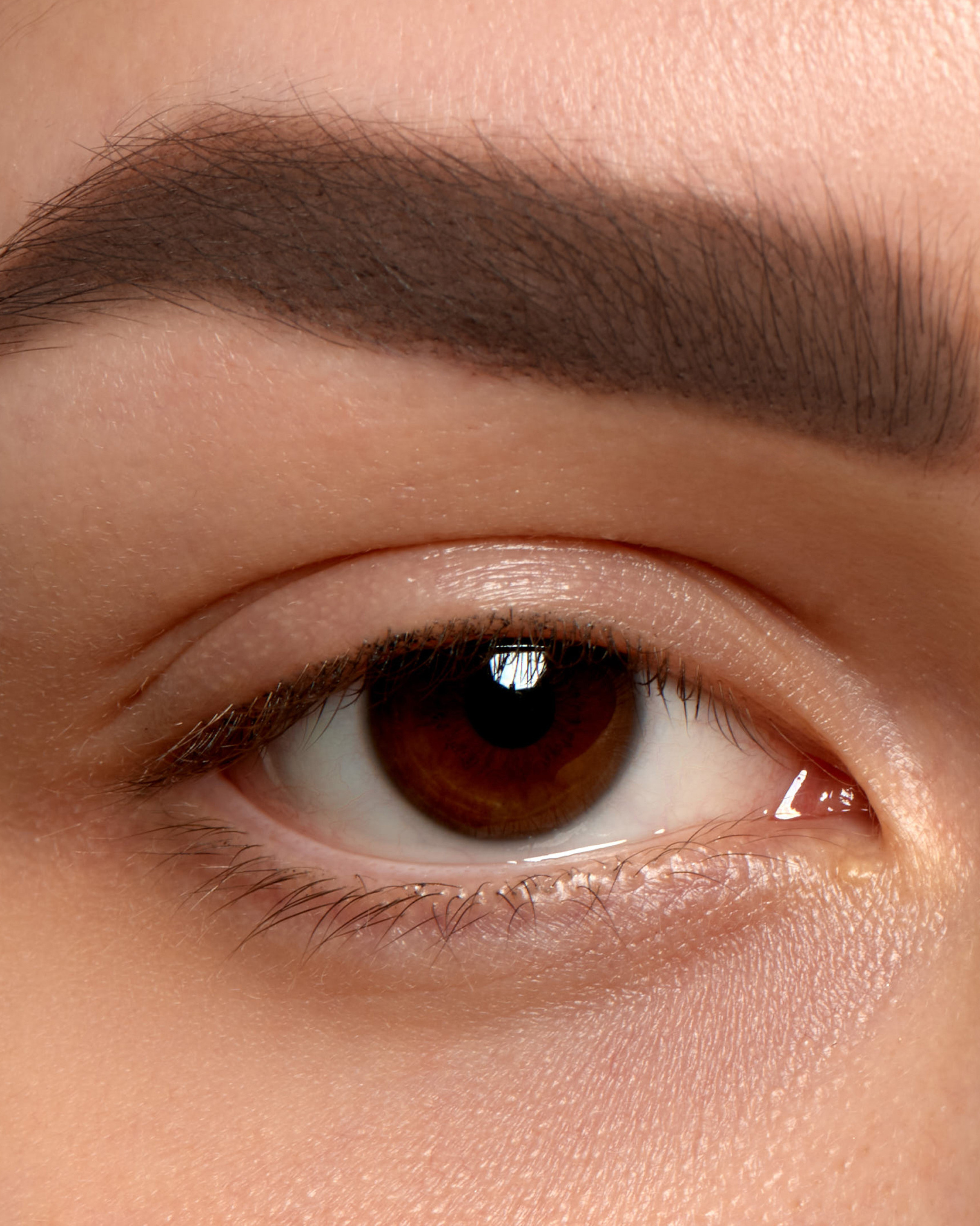 - Jasnym, rozświetlającym produktem (korektor, kredka) poprowadź równoległą linię wzdłuż dolnego konturu brwi i delikatnie ją rozetrzyj,