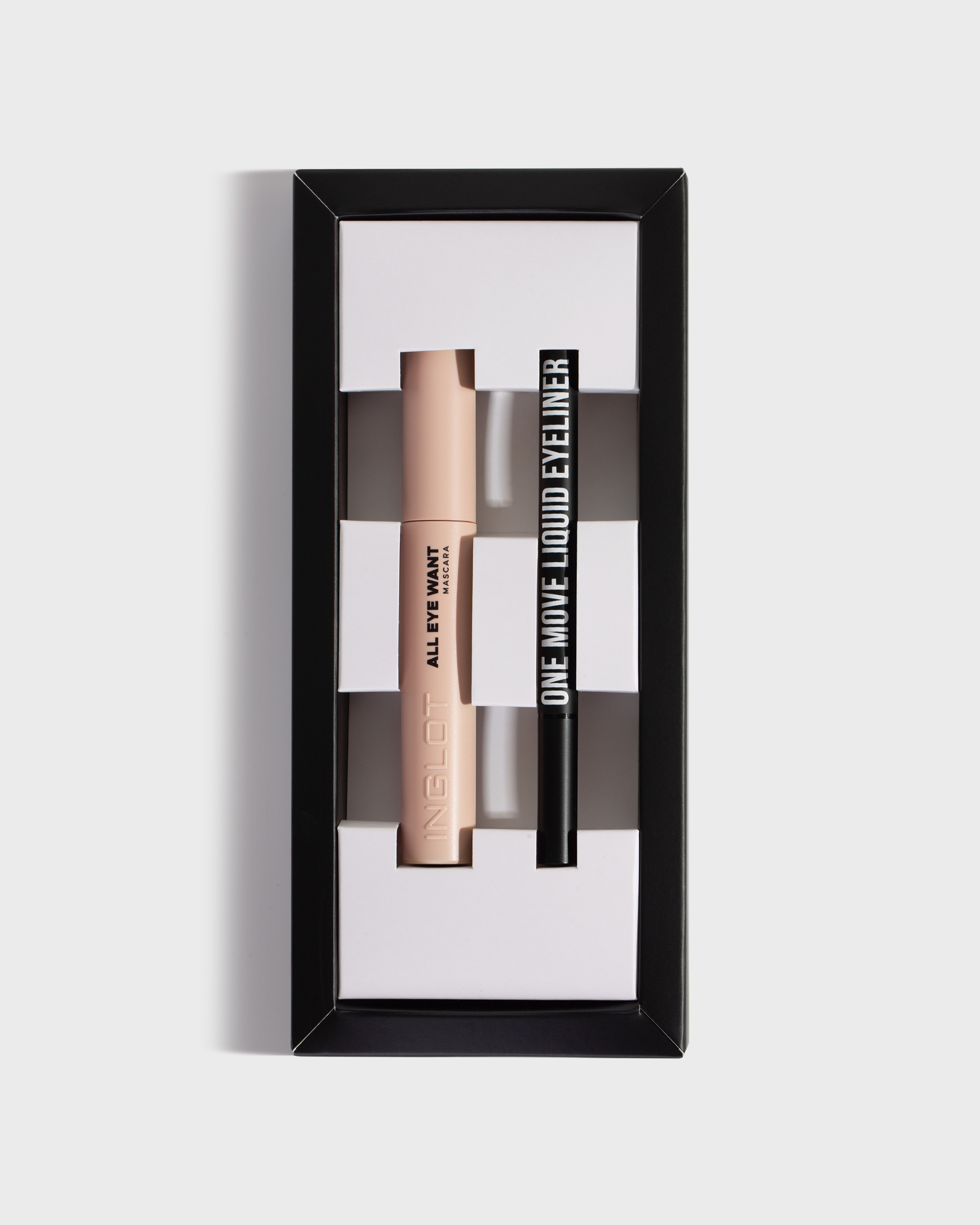 Ten zestaw zawiera dwa niezastąpione bestsellerowe produkty, które odmienią Twój makijaż oczu. Tusz do rzęs ALL EYE WANT INGLOT już po pierwszym pociągnięciu idealnie rozdziela i wydłuża rzęsy, docierając nawet do tych najkrótszych. Dzięki innowacyjnej silikonowej szczoteczce precyzyjna aplikacja staje się łatwa, a Twoje rzęsy zostaną dokładnie ułożone i rozczesane. Potrafisz zrobić idealną kreskę jednym ruchem? Z konturówką w płynie One Move udany efekt jest gwarantowany! Elastyczna i cienka końcówka umożliwia ruch w każdym kierunku. Wodoodporna formuła sprawia, że produkt jest wyjątkowo trwały i zapewnia delikatne matowe wykończenie. Intensywnie czarny eyeliner nie rozmazuje się, zachowując nieskazitelny wygląd.